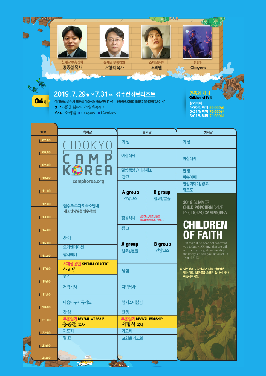 [초등부] 여름성경캠프 - 가정통신문 작성일19.07.03 15:33 본문 공유 여름성경캠프 - 가정통신문 이전글여름성경캠프 - 가정통신문 19.07.03 다음글여름성경캠프 - 믿음의 자녀 19.07.03