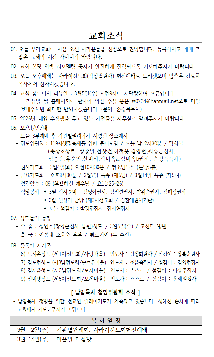 2025년3월2일 교회소식 페이지 정보 작성자해운대교회 댓글0건 조회685회 작성일25.03.06 14:56 본문 공유 . 이전글2025년3월9일 교회소식 25.03.08 다음글2025년2월23일 교회소식 25.02.22 댓글 0 댓글목록 등록된 댓글이 없습니다.