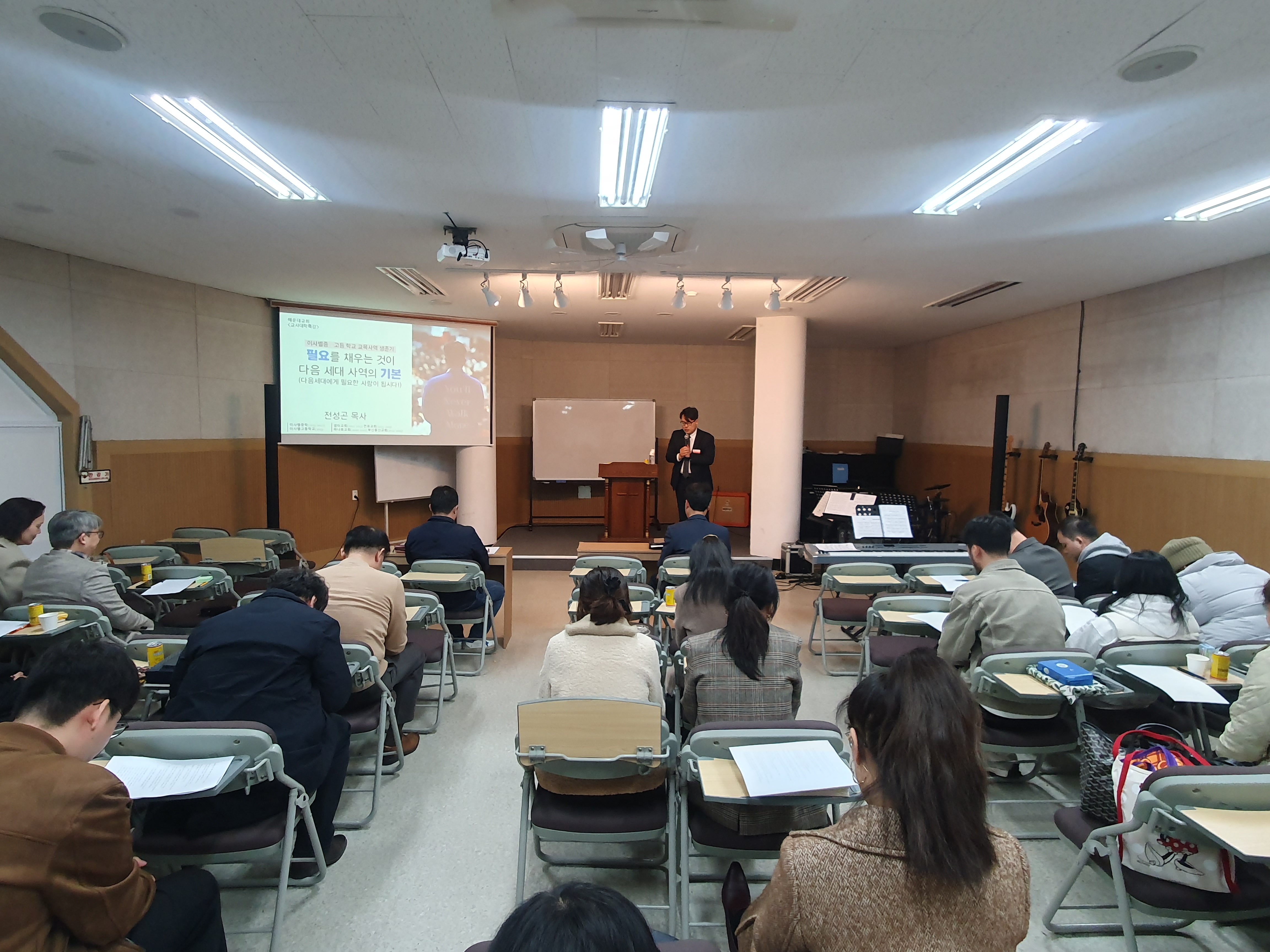 해운대교회 교육부서의 교사들에게 교사의 역할과 학생들을 잘 지도하기 위한 방법을 알려주기 위해 교사 대학의 시간을 가집니다.