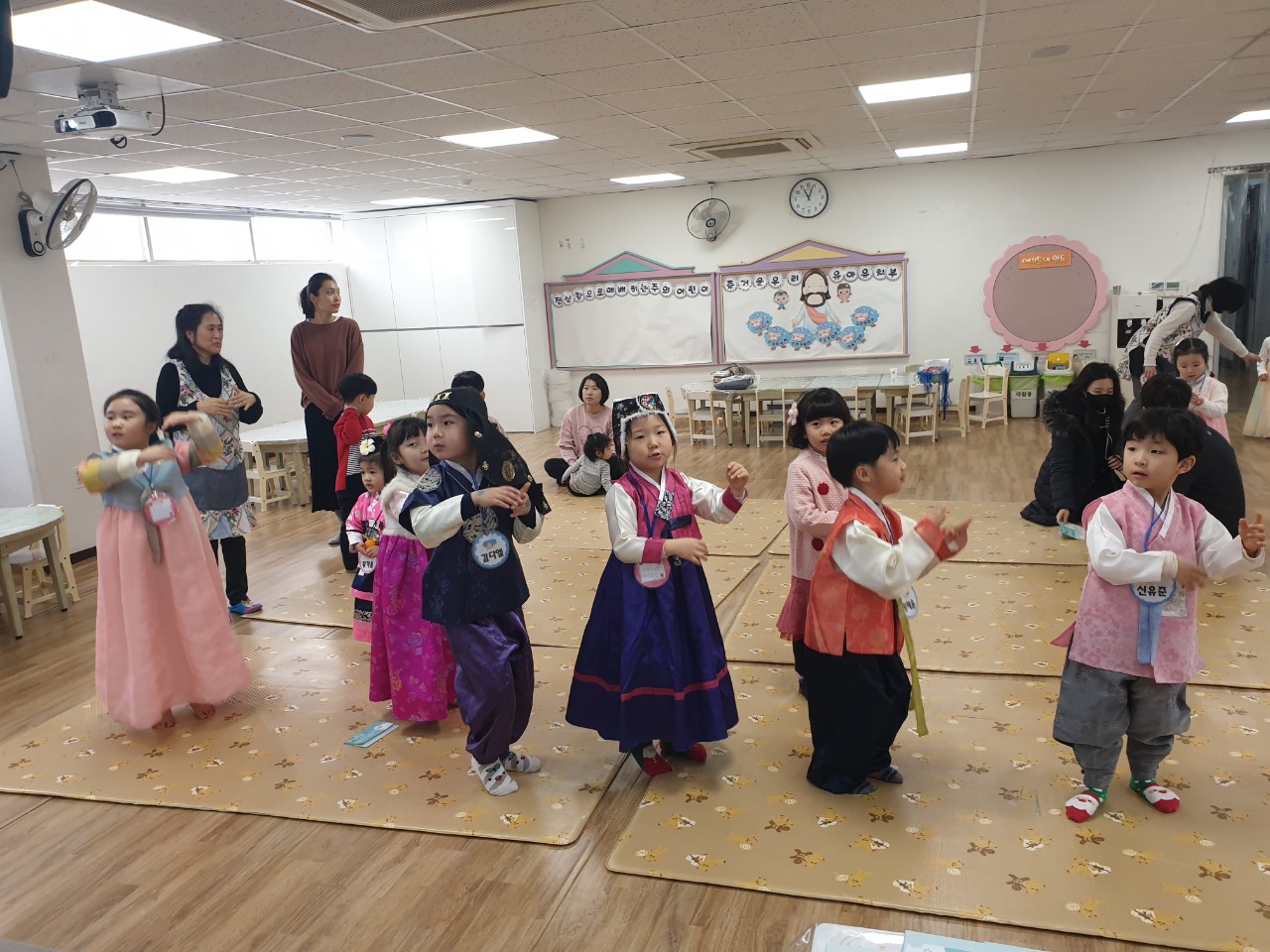 설 뒷날이라 우리 친구들 예쁘게 한복 입고 세배를 드리고 있네요... 세뱃돈도 득템 했습니다.